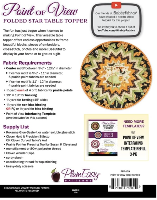 - Point of View Table Topper pattern (included in class fee)