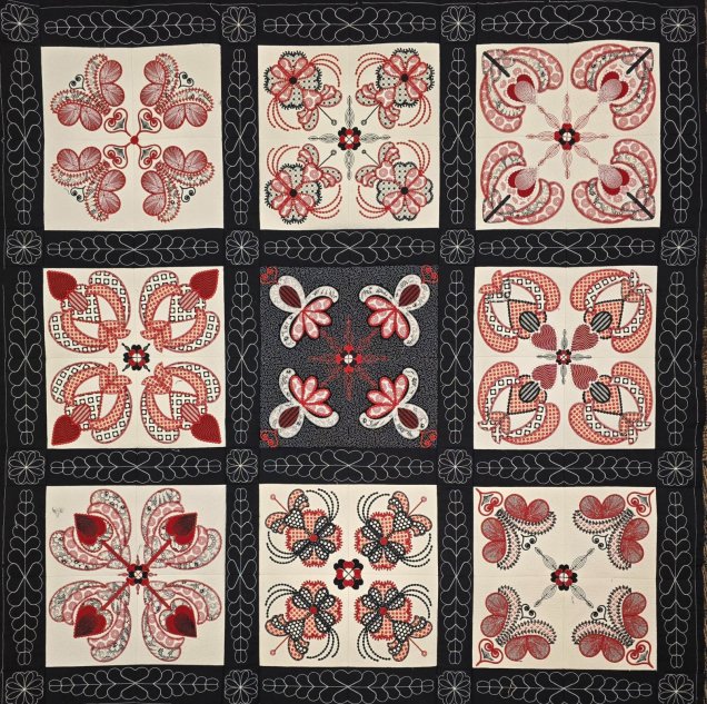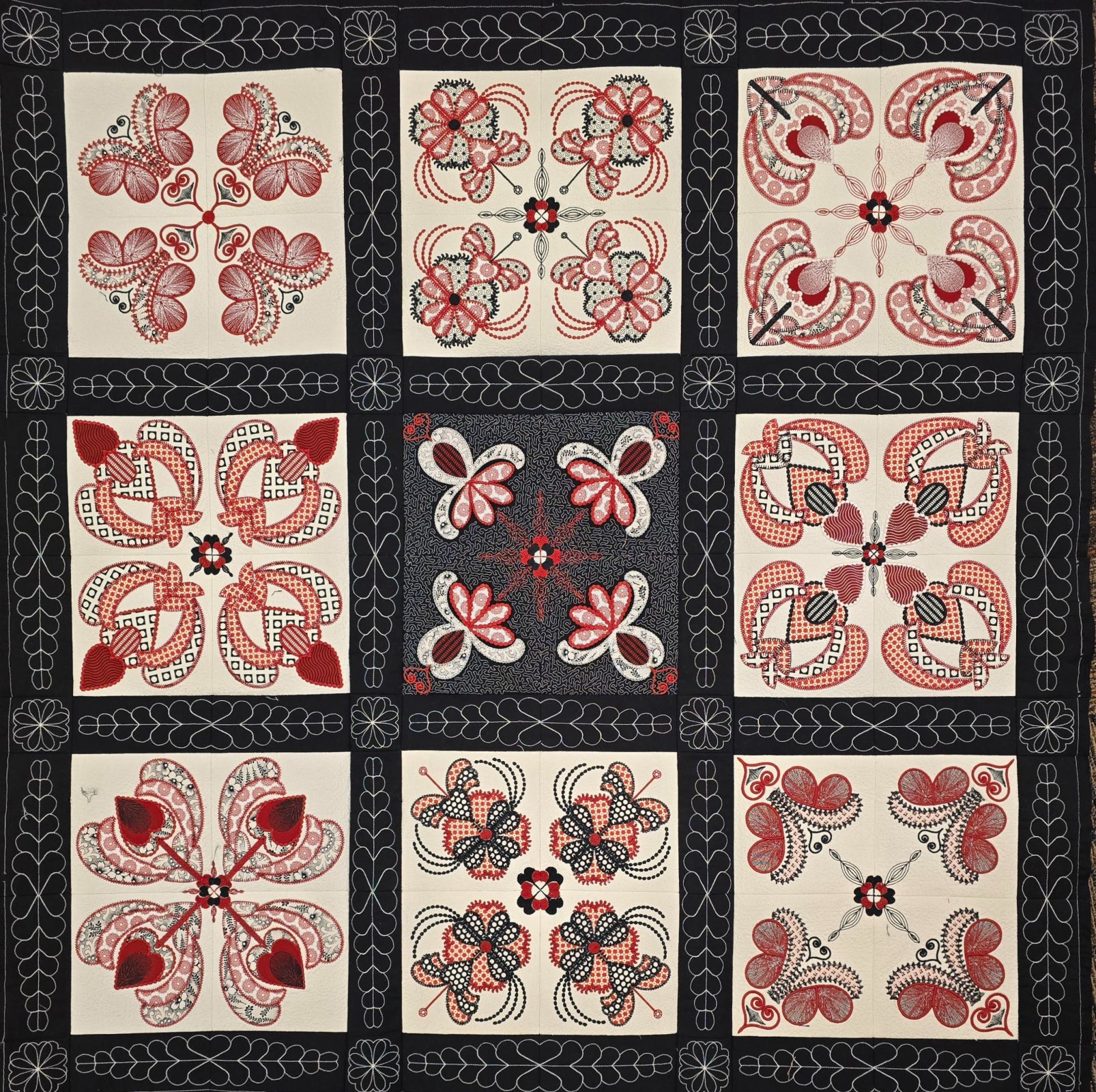 Hidden-Hearts Embroidered Quilt top